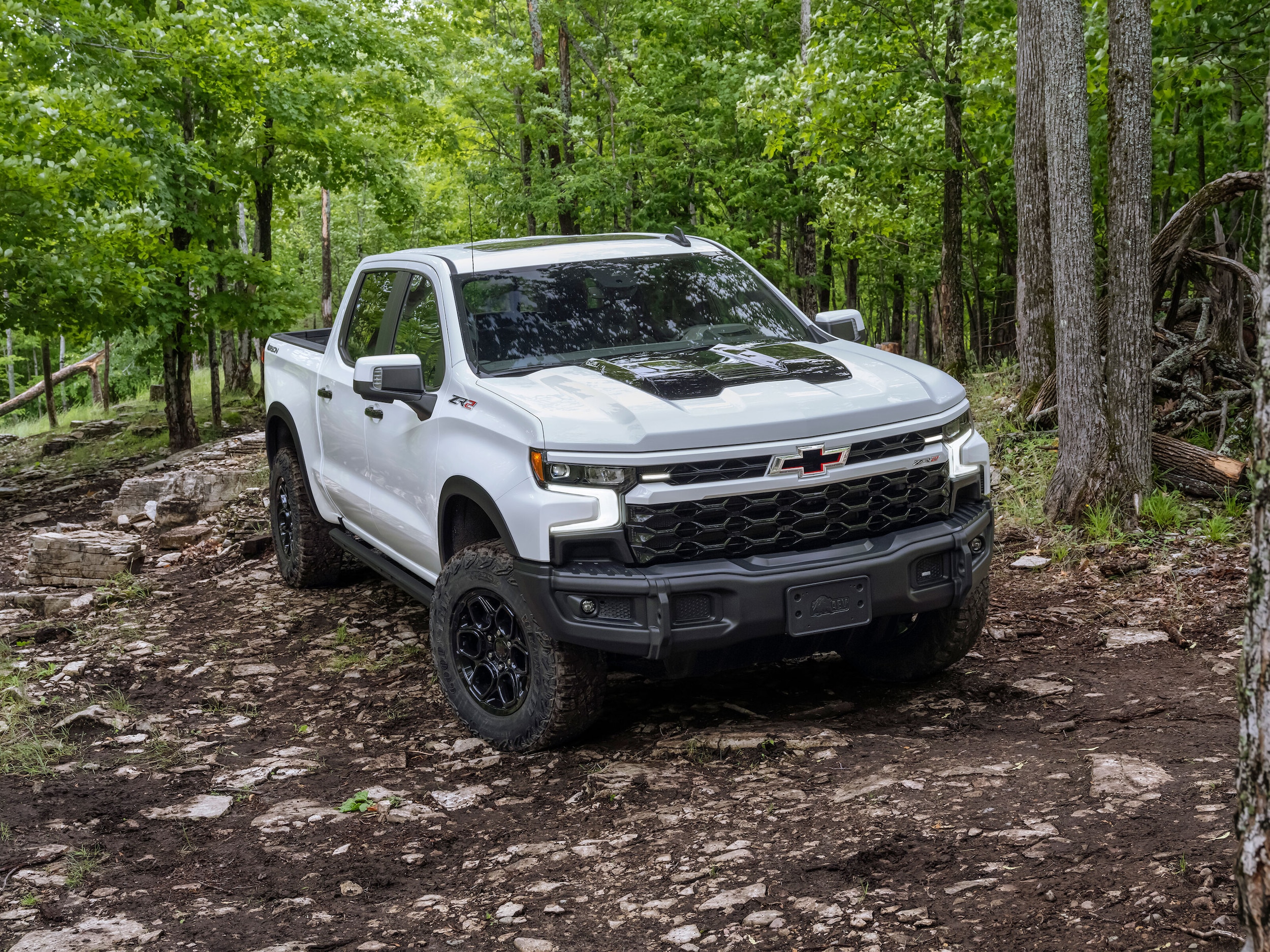 - ZR2 - This trim offers unmatched off-road performance with Multi DSSV™ dampers, front and rear Elockers, an off-road cut front bumper, aluminum skid plates, and 33-inch mud terrain tires for the ultimate adventure-ready truck.
