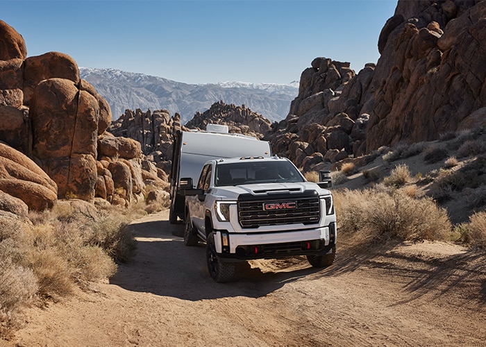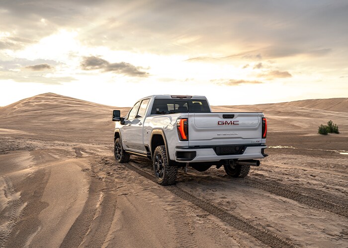 Powering the GMC 2500HD is a 401 horsepower 6.6-liter V-8. This model now has a 10-speed automatic transmission as standard and is equipped with rear- or four-wheel drive. As for the optional Duramax diesel 6.6-liter V-8, this engine produces 470 horsepower and 975 pound-feet of torque and utilizes an Allison-certified 10-speed automatic.