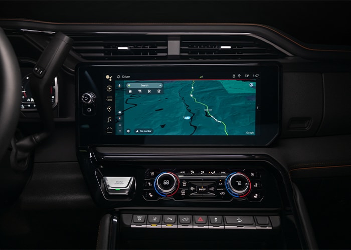 Additionally, every Sierra 2500HD model also comes standard with a touchscreen infotainment system with Apple CarPlay and Android Auto. Most trim levels utilize an eight-inch screen, but a larger 13.4-inch display is available with built-in navigation, wireless Apple CarPlay/Android Auto, and split-screen navigation.