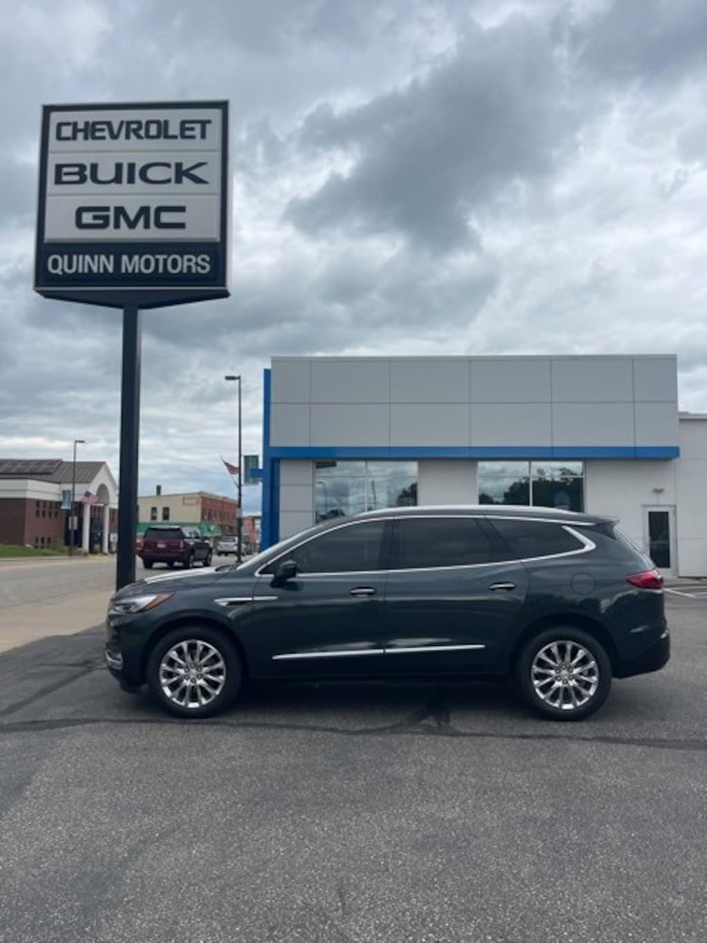 Quinn Motors of Ellsworth is honored to offer this good-looking 2021 Buick Enclave Premium Group in Dark Slate Metallic, beautifully equipped with 5000lbs Trailering Package (Heavy-Duty Cooling System, Hitch Guidance, and Hitch Guidance w/Hitch View), Front Mounting License Plate Bracket Package, Memory Package, Preferred Equipment Group 1SN, Premium Package (120-Volt Power Outlet, 3rd Row 60/40 Power Fold Split-Bench, Automatic Heated Steering Wheel, HD Radio, Heated 2nd Row Outboard Seats, Outside Heated Power-Adjustable Mirrors, and Power Tilt & Telescopic Steering Column), Surround & Sites Package (20 Polished Aluminum Wheels, Bose Performance-Enhanced 10-Speaker System, HD Surround Vision, Inside Rearview Mirror w/Full Camera Display, Radio: Buick Infotainment Sys AM/FM Stereo w/Nav, and SiriusXM w/360L), Enclave Premium Group, 4D Sport Utility, 3.6L V6 SIDI VVT, 9-Speed Automatic, AWD, Dark Slate Metallic, Dark Galvanized With Ebony Interior Accents Leather, 10 Speakers, 18 Painted Aluminum Wheels, 3.49 Axle Ratio, 3rd row seats: split-bench, 4-Wheel Disc Brakes, 7-Passenger Seating, ABS brakes, Air Conditioning, Alloy wheels, AM/FM radio: SiriusXM with 360L, Apple CarPlay/Android Auto, Audio memory, Auto High-beam Headlights, Auto tilt-away steering wheel, Auto-dimming door mirrors, Auto-dimming Rear-View mirror, Automatic temperature control, Brake assist, Bumpers: body-color, Compass, Delay-off headlights, Driver 4-Way Power Lumbar Seat Adjuster, Driver door bin, Driver vanity mirror, Dual front impact airbags, Dual front side impact airbags, Electronic Stability Control, Emergency communication system: OnStar and Buick connected services capable, Four wheel independent suspension, Front anti-roll bar, Front Bucket Seats, Front Center Armrest, Front dual zone A/C, Front Passenger 4-Way Power Lumbar Seat Adjuster, Front reading lights, Fully automatic headlights, Garage door transmitter, Heated door mirrors, Heated Driver & Front Passenger Seats, Heated front seats, Heated rear seats, Heated steering wheel, Illuminated entry, Leather steering wheel, Low tire pressure warning, Memory seat, Navigation System, Occupant sensing airbag, Outside temperature display, Overhead airbag, Overhead console, Panic alarm, Passenger door bin, Passenger vanity mirror, Perforated Leather-Appointed Seat Trim, Power door mirrors, Power driver seat, Power Liftgate, Power passenger seat, Power steering, Power windows, Premium audio system: Buick Infotainment System, Radio data system, Radio: Buick Infotainment System AM/FM Stereo, Rear air conditioning, Rear anti-roll bar, Rear reading lights, Rear window defroster, Rear window wiper, Remote keyless entry, Roof rack: rails only, Security system, Speed control, Speed-sensing steering, Spoiler, Steering wheel memory, Steering wheel mounted audio controls, Tachometer, Telescoping steering wheel, Tilt steering wheel, Traction control, Trip computer, Turn signal indicator mirrors, Variably intermittent wipers, Ventilated Driver & Front Passenger Seats, Ventilated front seats, and Voltmeter. ** NON SMOKER**, ** Leather Heated Seats**, Navigation, Backup Camera, Leather Seats, 3rd Row Seats, Enclave Premium Group, 4D Sport Utility, 3.6L V6 SIDI VVT, 9-Speed Automatic, AWD, Dark Slate Metallic, Dark Galvanized With Ebony Interior Accents Leather.