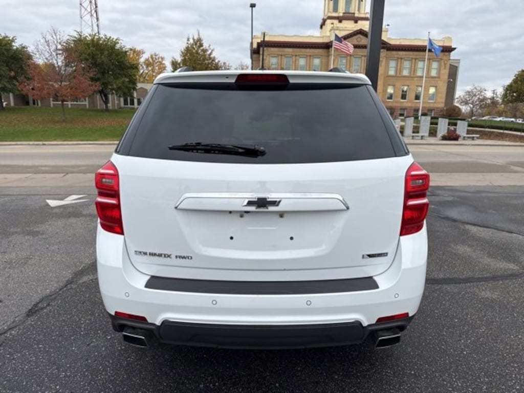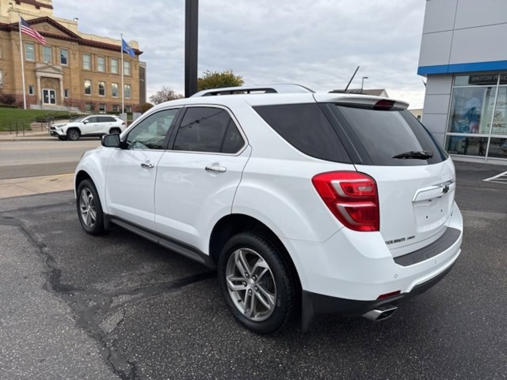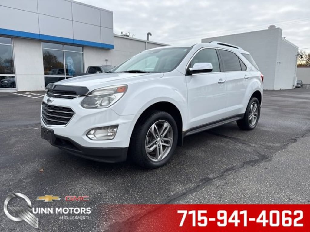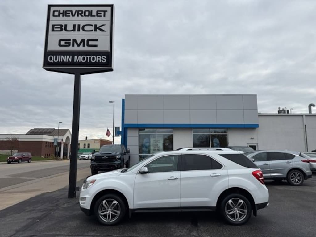 Quinn Motors of Ellsworth is delighted to offer this superb 2017 Chevrolet Equinox Premier in Summit White, beautifully equipped with Driver Confidence Package (Rear Cross-Traffic Alert, Rear Park Assist, and Side Blind Zone Alert), Driver Confidence Package II (Forward Collision Alert and Lane Departure Warning System), Enhanced Convenience Package (8-Way Power Front Passenger Seat Adjuster, Power Programmable Rear Liftgate, and Universal Home Remote), Preferred Equipment Group 1LZ (6 Speaker Audio System Feature and Bluetooth® For Phone), Technology Package (Pioneer Premium Audio System Feature, Radio: Chevrolet MyLink Audio System w/Navigation, and SiriusXM Satellite Radio), AWD, 155 Amp Alternator, 18 Aluminum Wheels, 4-Wheel Disc Brakes, 6 Speakers, 8-Way Power Driver Seat Adjuster, ABS brakes, Air Conditioning, Alloy wheels, AM/FM radio: SiriusXM, Auto-dimming Rear-View mirror, Automatic temperature control, Brake assist, Bumpers: body-color, Cargo Area Close-Out Panel (LPO), Compass, Delay-off headlights, Deluxe Front Bucket Seats, Driver door bin, Driver vanity mirror, Dual Exhaust w/Premium Tips, Dual front impact airbags, Dual front side impact airbags, E10 Fuel Capable, Electronic Stability Control, Emergency communication system: OnStar Guidance, Exterior Parking Camera Rear, Four wheel independent suspension, Front anti-roll bar, Front Bucket Seats, Front Center Armrest, Front fog lights, Front License Plate Bracket, Front reading lights, Fully automatic headlights, Heated door mirrors, Heated Driver & Front Passenger Seats, Heated front seats, Illuminated entry, Low tire pressure warning, Memory seat, Occupant sensing airbag, Outside temperature display, Overhead airbag, Panic alarm, Passenger door bin, Passenger vanity mirror, Perforated Leather-Appointed Seat Trim, Power door mirrors, Power driver seat, Power steering, Power Tilt-Sliding Sunroof w/Express-Open, Power windows, Premium audio system: Chevrolet MyLink, Radio data system, Radio: Chevrolet MyLink Audio System, Rear anti-roll bar, Rear seat center armrest, Rear window defroster, Rear window wiper, Remote keyless entry, Ride & Handling Suspension, Roof rack: rails only, Security system, Speed control, Speed-sensing steering, Split folding rear seat, Spoiler, Steering wheel mounted audio controls, Tachometer, Telescoping steering wheel, Tilt steering wheel, Traction control, Trip computer, and Variably intermittent wipers. AWD.