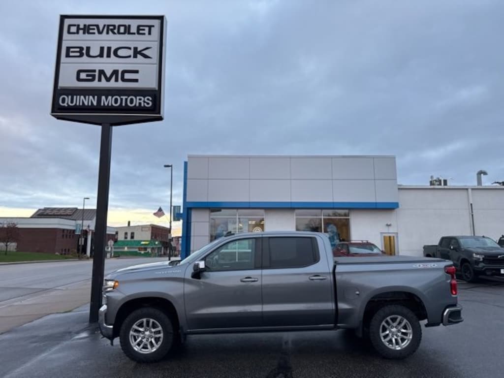 Quinn Motors of Ellsworth is delighted to offer this trusty 2021 Chevrolet Silverado 1500 LT in Satin Steel Metallic, beautifully equipped with Cloth Rear Seat w/Storage Package, Convenience Package (10-Way Power Driver Seat w/Lumbar, 12-Volt Rear Auxiliary Power Outlet, Dual-Zone Automatic Climate Control, Electric Rear-Window Defogger, Electrical Lock Control Steering Column, Heated Driver & Front Outboard Passenger Seats, Heated Steering Wheel, Keyless Open & Start, Leather Wrapped Steering Wheel, LED Cargo Area Lighting, Manual Tilt/Telescoping Steering Column, Rear Dual USB Charging-Only Ports, Remote Vehicle Starter System, and Theft Deterrent System (Unauthorized Entry)), Convenience Package II (120-Volt Instrument Panel Power Outlet, 2 USB Ports, HD Radio, HD Rear Vision Camera, Power Sliding Rear Window w/Rear Defogger, Radio: Chevrolet Infotainment 3 Plus System, SiriusXM w/360L, Universal Home Remote, Wireless Phone Projection, and 120-Volt Bed Mounted Power Outlet), Preferred Equipment Group 1LT (2 USB Ports (First Row), 4.2 Diagonal Color Display Driver Info Center, All-Star Edition, Auto-Locking Rear Differential, Bluetooth® For Phone, Chrome Grille, Chrome Mirror Caps, Color-Keyed Carpeting Floor Covering, Compass, Deep-Tinted Glass, Electronic Cruise Control, EZ Lift Power Lock & Release Tailgate, Front Frame-Mounted Black Recovery Hooks, Front Rubberized Vinyl Floor Mats, OnStar & Chevrolet Connected Services Capable, Power Door Locks, Power Front Windows w/Driver Express Up/Down, Power Front Windows w/Passenger Express Down, Power Rear Windows w/Express Down, Rear 60/40 Folding Bench Seat (Folds Up), Rear Rubberized-Vinyl Floor Mats, Rear Vision Camera, SiriusXM Radio, Standard Tailgate, Steering Wheel Audio Controls, 4G LTE Wi-Fi Hot Spot Capable, and Chevrolet Connected Access Capable), Trailering Package (Hitch Guidance), Silverado 1500 LT LT1, 4D Crew Cab, EcoTec3 5.3L V8, 8-Speed Automatic, 4WD, Satin Steel Metallic, Black Cloth, 170 Amp Alternator, 220 Amp Alternator, 3.23 Rear Axle Ratio, 4-Wheel Disc Brakes, 40/20/40 Front Split-Bench Seat, 6 Speakers, ABS brakes, Air Conditioning, Alloy wheels, AM/FM radio: SiriusXM, Apple CarPlay/Android Auto, Automatic temperature control, Auxiliary External Transmission Oil Cooler, Brake assist, Bumpers: chrome, Cloth Seat Trim, Delay-off headlights, Driver door bin, Driver vanity mirror, Dual front impact airbags, Dual front side impact airbags, Electronic Stability Control, External Engine Oil Cooler, Front anti-roll bar, Front Center Armrest w/Storage, Front dual zone A/C, Front License Plate Kit, Front reading lights, Front wheel independent suspension, Fully automatic headlights, Heated door mirrors, Heated front seats, Heated steering wheel, Heavy Duty Suspension, Illuminated entry, Integrated Trailer Brake Controller, Low tire pressure warning, Occupant sensing airbag, Outside temperature display, Overhead airbag, Overhead console, Panic alarm, Passenger door bin, Passenger vanity mirror, Power door mirrors, Power driver seat, Power steering, Power windows, Premium audio system: Chevrolet Infotainment 3, Radio data system, Radio: Chevrolet Infotainment 3 System, Rear reading lights, Rear step bumper, Rear window defroster, Remote keyless entry, Security system, Speed control, Speed-sensing steering, Split folding rear seat, Steering wheel mounted audio controls, Tachometer, Telescoping steering wheel, Tilt steering wheel, Traction control, Trip computer, Variably intermittent wipers, Voltmeter, Wheels: 17 x 8 Bright Silver Painted Aluminum, and Wheels: 18 x 8.5 Bright Silver Painted Aluminum. ** NON SMOKER**, Navigation, Backup Camera, One owner, Completely inspected and reconditioned, Silverado 1500 LT LT1, 4D Crew Cab, EcoTec3 5.3L V8, 8-Speed Automatic, 4WD, Satin Steel Metallic, Black Cloth, 10-Way Power Driver Seat w/Lumbar, 12-Volt Rear Auxiliary Power Outlet, 120-Volt Instrument Panel Power Outlet, 2 USB Ports, 2 USB Ports (First Row), 4.2 Dia