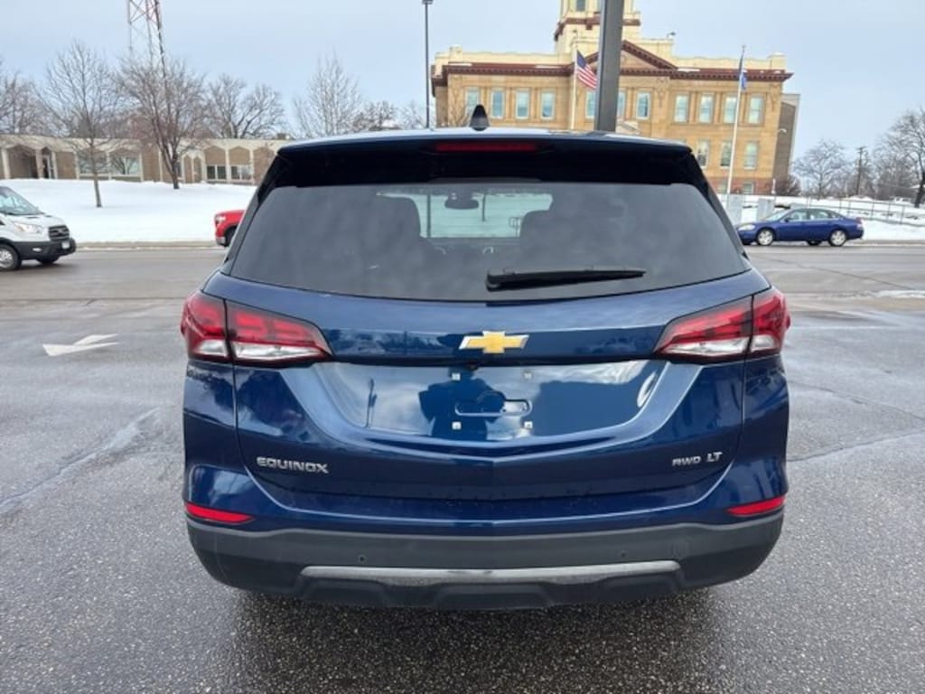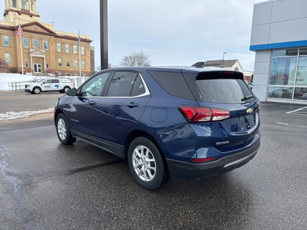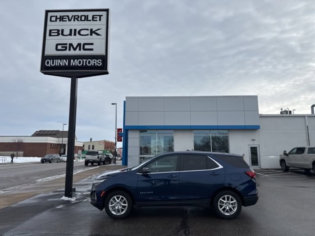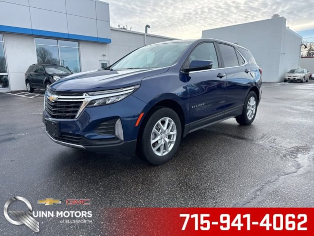 Quinn Motors of Ellsworth is proud to offer this handsome-looking 2022 Chevrolet Equinox LT in Blue Glow Metallic, beautifully equipped with Advanced Safety Package (Adaptive Cruise Control, HD Surround Vision, and Outside Heated Power Adjustable Mirrors), Confidence & Convenience Package, Driver Confidence II Package (Front & Rear Park Assist, Lane Change Alert w/Side Blind Zone Alert, and Rear Cross Traffic Alert), Driver Convenience Package (3-Spoke Leather-Wrapped Steering Wheel, Dual Zone Automatic Climate Control, Heated Driver & Front Passenger Seats, Rear Power Liftgate, and Remote Start), Infotainment Package (120-Volt Power Outlet, 2 USB Data Ports, 2 USB Data Ports w/SD Card Reader, Heated Steering Wheel, and Radio: Chevrolet Infotainment 3 Plus System w/Navi), Preferred Equipment Group 1LT, AWD, 17 Aluminum Wheels, 2 Rear USB Charging-Only Ports, 2 USB Ports & Auxiliary Input Jack, 2-Way Power Driver Lumbar Control Seat Adjuster, 3.87 Final Drive Axle Ratio, 4-Wheel Disc Brakes, 6 Speaker Audio System Feature, 6 Speakers, 8-Way Power Driver Seat Adjuster, ABS brakes, Air Conditioning, Alloy wheels, AM/FM radio: SiriusXM, Auto High-beam Headlights, Bluetooth® For Phone, Brake assist, Bumpers: body-color, Cold Air Grille Shutter, Compass, Delay-off headlights, Driver door bin, Driver vanity mirror, Dual front impact airbags, Dual front side impact airbags, Electronic Stability Control, Emergency communication system: OnStar and Chevrolet connected services capable, Four wheel independent suspension, Front anti-roll bar, Front Bucket Seats, Front Center Armrest, Front Passenger 4-Way Manual Seat Adjuster, Front reading lights, Fully automatic headlights, Heated door mirrors, Illuminated entry, Low tire pressure warning, Occupant sensing airbag, Outside temperature display, Overhead airbag, Overhead console, Panic alarm, Passenger door bin, Passenger vanity mirror, Power door mirrors, Power driver seat, Power steering, Power windows, Premium audio system: Chevrolet Infotainment 3, Premium Cloth Seat Trim, Radio data system, Radio: Chevrolet Infotainment 3 System w/AM/FM, Rear anti-roll bar, Rear reading lights, Rear seat center armrest, Rear window defroster, Rear window wiper, Remote keyless entry, Security system, SiriusXM Radio, Speed control, Speed-sensing steering, Split folding rear seat, Spoiler, Steering wheel mounted audio controls, Tachometer, Telescoping steering wheel, Tilt steering wheel, Traction control, Trip computer, Variably intermittent wipers, and Wireless Apple CarPlay/Wireless Android Auto. AWD. Priced below KBB Fair Purchase Price! Odometer is 5750 miles below market average! 25/30 City/Highway MPG