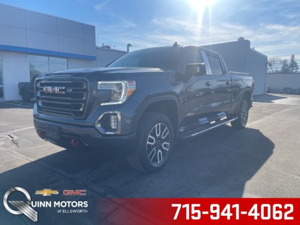 Quinn Motors of Ellsworth is pumped up to offer this superb-looking 2021 GMC Sierra 1500 AT4 in Dark Sky Metallic, beautifully equipped with AT4 Preferred Package (Power Sliding Rear Window w/Rear Defogger, Premium Bose 7-Speaker Sound System, Radio: Premium GMC Infotainment Sys w/Navigation, SiriusXM w/360L, Universal Home Remote, and Wireless Charging), AT4 Value Package, Driver Alert Package I (Lane Change Alert w/Side Blind Zone Alert, Perimeter Lighting, Rear Cross Traffic Alert, and Ultrasonic Front & Rear Park Assist), Driver Alert Package II (Adaptive Cruise Control, Automatic Emergency Braking, Following Distance Indicator, Forward Collision Alert, Front Pedestrian Braking, IntelliBeam Automatic High Beam On/Off, Lane Keep Assist w/Lane Departure Warning, and Safety Alert Seat), Preferred Equipment Group 4SB (12-Volt Rear Auxiliary Power Outlet, 120-Volt Bed Mounted Power Outlet, 120-Volt Instrument Panel Power Outlet, 2 USB Ports, 2 USB Ports (1st Row), 4.2 Diagonal Color Display Driver Info Center, 4G LTE Wi-Fi Hotspot Capable, Auto-Locking Rear Differential, Auxiliary External Transmission Oil Cooler, Body-Color Surround Grille, Color-Keyed Carpeting Floor Covering, Compass, Deep-Tinted Glass, Electric Rear-Window Defogger, Electrical Lock Control Steering Column, Floor-Mounted Center Console, Front Prem Floor Liners w/Removable Carpet Insert, GMC Connected Access Capable, HD Rear Vision Camera, Heated Driver & Front Outboard Passenger Seating, Heavy-Duty Air Filter, Hill Descent Control, Hitch Guidance w/Hitch View, In-Vehicle Trailering App, Integrated Trailer Brake Controller, Keyless Open & Start, LED Cargo Area Lighting, Manual Tilt-Wheel & Telescoping Steering Column, OnStar & GMC Connected Services Capable, Power Door Locks, Power Front Passenger Windows w/Express Up/Down, Power Front Windows w/Driver Express Up/Down, Power Rear Windows w/Express Down, ProGrade Trailering System, Rear Dual USB Charging-Only Ports, Rear Prem Floor Liners w/Removable Carpet Insert, Rear Wheelhouse Liners, Red Recovery Hooks, Remote Vehicle Starter System, Spray-On Pickup Bed Liner w/AT4 Logo, Steering Wheel Audio Controls, Theft Deterrent System (Unauthorized Entry), and Ventilated Driver & Front Passenger Seats), Trailering Package (Hitch Guidance), 10-Speed Automatic, 4WD, Jet Black With Kalahari Accents Leather, 10-Way Power Driver Seat Adjuster w/Lumbar, 10-Way Power Passenger Seat Adjuster w/Lumbar, 170 Amp Alternator, 18 x 8.5 Machined Aluminum Wheels, 220 Amp Alternator, 3.23 Rear Axle Ratio, 4-Wheel Disc Brakes, 6 Speakers, 6-Speaker Audio System Feature, ABS brakes, Air Conditioning, Alloy wheels, AM/FM radio: SiriusXM with 360L, Apple CarPlay/Android Auto, Auto-dimming door mirrors, Auto-dimming Rear-View mirror, Automatic temperature control, Block heater, Brake assist, Bumpers: body-color, Delay-off headlights, Driver door bin, Driver Memory, Driver vanity mirror, Dual front impact airbags, Dual front side impact airbags, Electronic Stability Control, Engine Block Heater, Front anti-roll bar, Front Bucket Seats, Front Center Armrest, Front dual zone A/C, Front fog lights, Front License Plate Kit, Front reading lights, Front wheel independent suspension, Fully automatic headlights, Heated 2nd Row Outboard Seats, Heated door mirrors, Heated front seats, Heated steering wheel, Illuminated entry, Low tire pressure warning, Memory seat, Occupant sensing airbag, Off-Road Suspension, Outside temperature display, Overhead airbag, Overhead console, Panic alarm, Passenger door bin, Passenger vanity mirror, Perforated Leather-Appointed Front Seat Trim, Power door mirrors, Power driver seat, Power passenger seat, Power steering, Power windows, Premium audio system: GMC Infotainment System, Radio data system, Radio: Premium GMC Infotainment Sys w/Multi-Touch, Rear reading lights, Rear seat center armrest, Rear step bumper, Rear window defroster, Remote keyless entry, Security sy