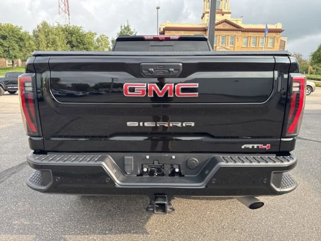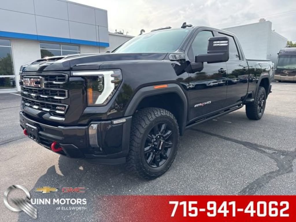 Quinn Motors of Ellsworth is pumped up to offer this superb-looking 2024 GMC Sierra 2500HD AT4 in Onyx Black, beautifully equipped with AT4 Preferred Package (Adaptive Cruise Control, LED Smoked Amber Roof Marker Lamps, Power Sliding Rear Window w/Defogger, and Universal Home Remote), AT4 Premium Plus Package (Off-Road High Clearance Step (LPO) and Power Sunroof), Gooseneck/5th Wheel Prep Package, Preferred Equipment Group 4SB (120-Volt Bed Mounted Power Outlet, 120-Volt Instrument Panel Power Outlet, 2 Charge-Only Rear USB Ports, 2 Charge/Data USB Ports Inside Center Console, 2 USB Ports, 2-Speed Active Transfer Case, Bed View Camera w/2 Trailer Camera Provisions, Bose Premium 7-Speaker Sound System, Deep-Tinted Glass, Electric Rear-Window Defogger, Floor-Mounted Center Console, Front Prem Floor Liners w/Removable Carpet Insert, Front Rain-Sensing Wipers, Gloss Black Header Grille & Grille Insert Bars, GMC Connected Access Capable, HD Surround Vision, Heated 2nd Row Outboard Seats, Heated Driver & Front Outboard Passenger Seats, Integrated Trailer Brake Controller, Keyless Open & Start, LED Cargo Area Lighting, Manual Tilt-Wheel/Telescoping Steering Column, OnStar & GMC Connected Services Capable, Power Front Passenger Windows w/Express Up/Down, Push Button Start, Rear Cross Traffic Alert, Rear Prem Floor Liners w/Removable Carpet Insert, Rear Wheelhouse Liners, Remote Vehicle Starter System, Safety Alert Seat, SiriusXM w/360L, Spray-On Bedliner w/AT4 Logo, Steering Wheel Audio Controls, Trailer Cam Provisions & Trailer Viewing Software, Trailer Side Blind Zone Alert, Ultrasonic Front & Rear Park Assist, Unauthorized Entry Theft-Deterrent System, Ventilated Driver & Front Passenger Seats, Wireless Charging, and Wireless Phone Projection), Technology Package (Inside Rearview Auto-Dimming Rear Camera Mirror and Multicolor 15 Diagonal Head-Up Display), X31 Off-Road Package (Hill Descent Control), Sierra 2500HD AAT4, 4D Crew Cab, 6.6L V8, 10-Speed Automatic, 4WD, Onyx Black, Jet Black With Kalahari Accents Leather, 10-Way Power Driver Seat Adjuster w/Lumbar, 10-Way Power Passenger Seat Adjuster w/Lumbar, 1st & 2nd Rows All-Weather Floor Liners (LPO), 3.73 Rear Axle Ratio, 4-Wheel Disc Brakes, 7 Speakers, ABS brakes, Air Conditioning, Alloy wheels, AM/FM radio: SiriusXM with 360L, Apple CarPlay/Android Auto, Auto High-beam Headlights, Auto-dimming door mirrors, Auto-dimming Rear-View mirror, Automatic Emergency Braking, Automatic temperature control, Brake assist, Buckle to Drive, Bumpers: body-color, Compass, Delay-off headlights, Driver door bin, Driver Memory, Driver vanity mirror, Dual front impact airbags, Dual front side impact airbags, Electronic Stability Control, Following Distance Indicator, Forward Collision Alert, Front anti-roll bar, Front Bucket Seats, Front Center Armrest, Front dual zone A/C, Front fog lights, Front License Plate Kit, Front Pedestrian Braking, Front reading lights, Front wheel independent suspension, Fully automatic headlights, Heated door mirrors, Heated front seats, Heated rear seats, Heated steering wheel, Heavy-Duty 80 Amp Battery, Hitch Guidance w/Hitch View, Illuminated entry, In-Vehicle Trailering System App, IntelliBeam Automatic High Beam On/Off, Lane Departure Warning System, Low tire pressure warning, Memory seat, Occupant sensing airbag, Off-Road Suspension, Outside temperature display, Overhead airbag, Overhead console, Panic alarm, Passenger door bin, Passenger vanity mirror, Perforated Leather-Appointed Front Seat Trim, Pickup Box, Power door mirrors, Power driver seat, Power passenger seat, Power steering, Power windows, Power-Retractable Black Assist Steps, Premium audio system: Premium GMC Infotainment System, Radio: AM/FM w/Premium GMC Infotainment System, Rain sensing wipers, Rear reading lights, Rear seat center armrest, Rear step bumper, Rear window defroster, Remote keyless entry, Security system, Speed control, Speed-sensing